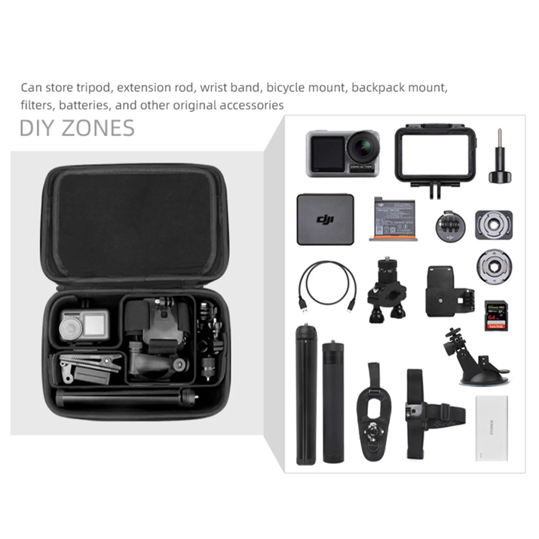 - Product name : SUNNYLIFE Waterproof Carrying Case Hard Handbag for DJI OSMO ACTION Camera 4 batteries Tripod Drone